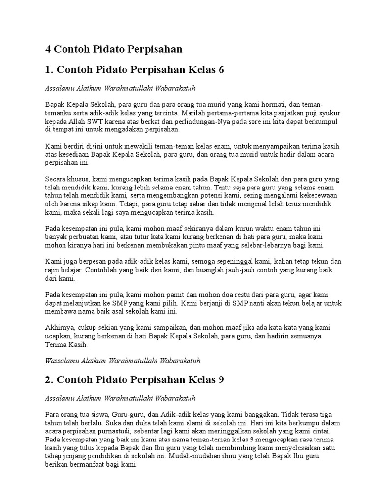 Assalamu alaikum warahmatullahi wabarakatuh. It is such an honorable and also rare opportunity for me to greet you in this ceremony. Contoh teks pidato perpisahan sekolah singkat kelas 6 sd 9 smp 12 sma. Contoh pidato singkat tentang lingkungan pendidikan kesehatan kebersihan narkoba islami perpisahan kelas 6 9 12 yang menarik lucu menghibur. Berikut ini contoh pidato perpisahan sebagai.