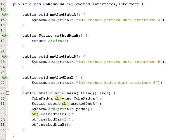 Berikut ini adalah contoh class yang menggunakan abstraction. Tutorial dasar penggunaan class abstract dan interface pada java salah satu contoh konsep oop interface adalah method abstract artinya method hanya dideklarasikan tidak ditulis secara utuh berfungsi untuk di implementasikan pada class turunanya. Contoh program class abstract dan method abstract. Class shape adalah class abstrak karena dia punya method abstrak getarea hitung luas. Terdapat 2 buat method yaitu mdata dan mbiodata. Keduanya juga sama sama tidak dapat digunakan untuk instansi objek hanya dapat di implementasikan oleh class turunanya.