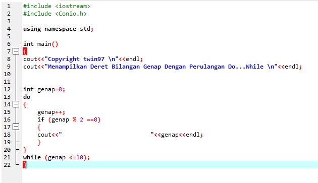 Contoh program c perulangan do while. Seperti judul postingan diatas mari kita bahas tentang perulangan while c seperti biasa saya menggunakan program aplikasi borland c 502. Dalam c terdapat 3 jenis struktur perulangan yaitu. Do while pertama kali akan mengeksekusi pernyataannya terlebih. Berdasarkan contoh di atas kita dapat pahami. Kali ini saya akan membagikan project yang saya buat dengan c yaitu membuat perulangan dengan c menggunakan perulangan for perulangan while dan menggunakan do while. Struktur for struktur while dan struktur do while.
