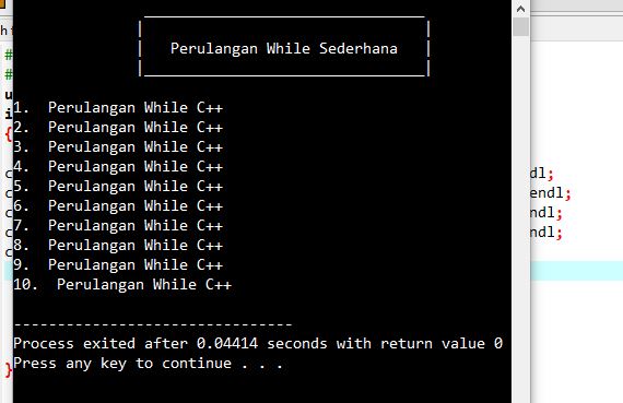 Contoh program c perulangan sederhana. Hasilnya seperti gambar berikut ini. Contoh program c pembelian tiket bioskop dengan if dan else. Contoh program c perulangan sederhana dan penjelasannya at damasdev jika di artikel sebelumnya kita telah belajar tentang percabangan maka sekarang kita akan belajar konsep perulangan dalam bahasa c dengan contoh programnya. Kita mulai dengan perulangan yang sederhana terlebih dahulu diatas adalah program c perulangan angkam dimana setiap perulangan menampilkan kata ini adalah perulangan angka ke dan selanjutnya angka yang dihitung dari perulangan. Jiaka anda masih bingung maka anda bisa mempelajarinya melalui contoh contoh sederhana dari statement kontol dan looping atau perulangan di bawah ini sebanyak 25 contoh program dengan menggunakan bahasa c. Berikut contoh sederhana percabangan pada c.
