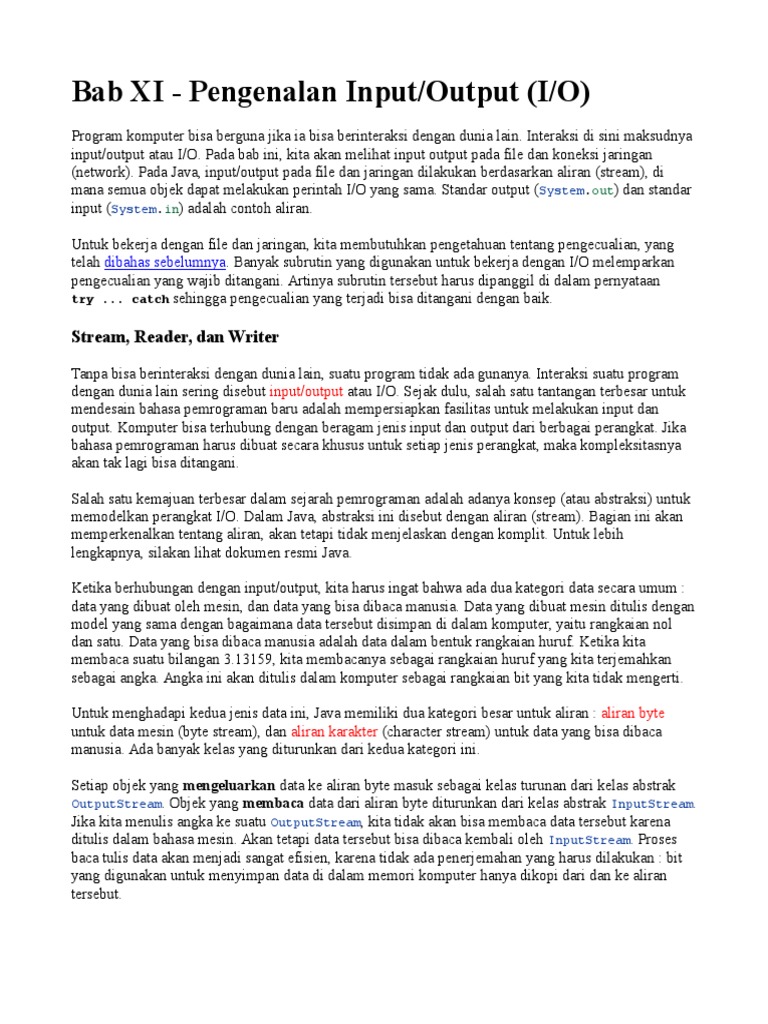 Contoh program input output java. Contoht program dengan input class scanner input java dengan bufferedreader input java dengan console output java dengan print dan println. Contoh program input dari keyboard dan menampilkan output di console scanner bufferedreader console maca macam fungsi input dan output berserta contohnya dalam program java. Scanner adalah salah satu class library di dalam bahasa pemrograman java javautilscanner sejak jdk versi 5. Beberapa di antara kalian mungkin ada yang masih belum tahu apa itu scanner. Sejak dulu salah satu tantangan terbesar untuk mendesain bahasa pemrograman baru adalah mempersiapkan fasilitas untuk melakukan input dan output. Apa itu bufferedreader bufferedreader adalah suatu perintah yang disediakan oleh java untuk melakukan proses input output.