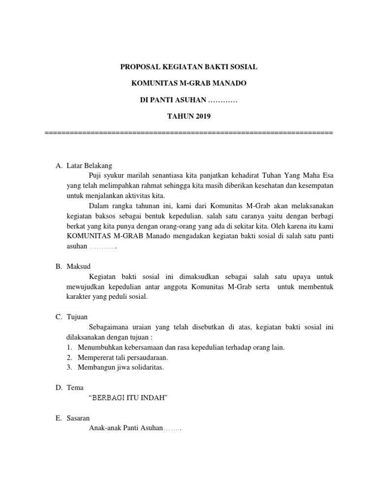 Contoh proposal kegiatan kunjungan ke panti asuhan. Kelas stmik amik riau. Selasa sabtu 24 28 februari 2015 waktu. Proposal bhakti sosial page 1. Atas perhatian dan kerjasamanya kami ucapkan terimakasih. Oleh sebab itu kami berharap adanya kritik saran dan usulan yang membangun demi perbaikan makalah kami dimasa yang akan datang. Saat kunjungan ke panti asuhan b.
