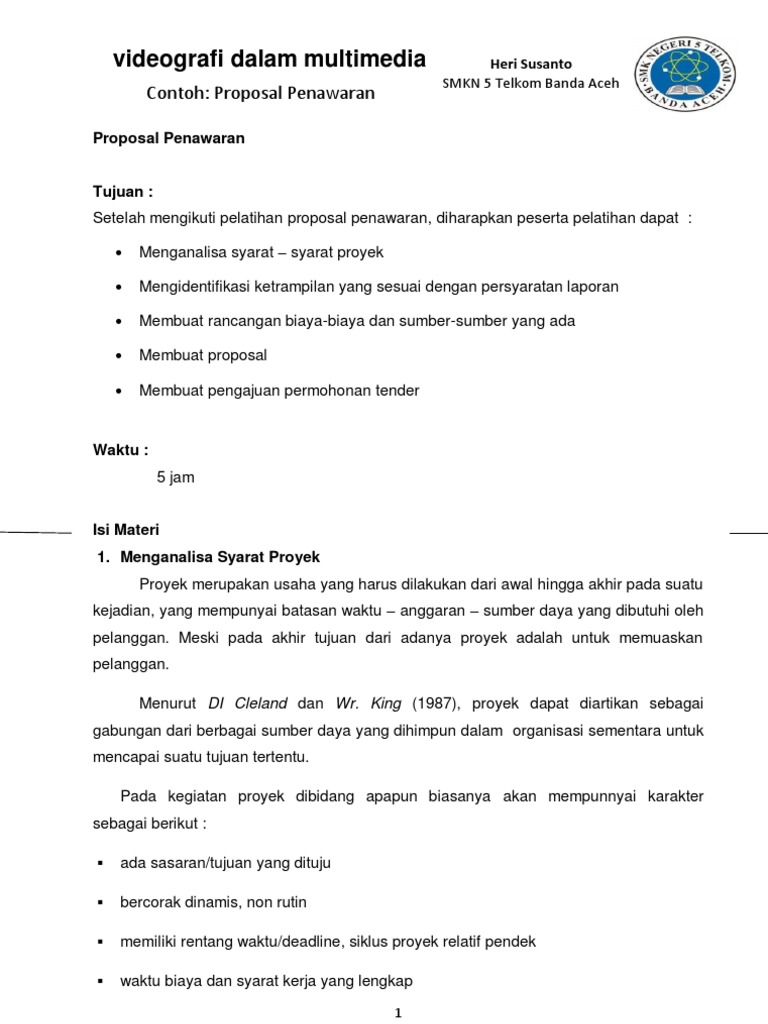 Proposal proyek adalah istilah lain yang dipakai untuk membedakan proposal yang ditulis untuk bisnis atau penelitianmeski demikian dalam proposal proyek kecederungannya adalah menawarkan kegiatan yang lebih bersifat sosial non profit dan biasanya masuk dalam program program eksklusif seperti program pemerintah atau misi sosial pada perusahaan perusahaan tertentu. Sekali lagi kami ucapkan terimakasih yang sebanyak banyaknya khususnya terimakasih yang sebesar besarnya kepada bapak bimuka jati andro meda selaku guru dan juga pembimbing dalam pelajaran kerja proyek dan juga telah memeriksa proposal kami sehingga proposal yang kami buat ini bisa menjadi seperti ini. Dari mulai latar belakang yang mendasari pelaksanaan kegiatan tujuan biaya dan lain lain. Proposal sering juga dikatakan sebuah rencana untuk mencapai sebuah tujuan kegitan. Proses pekerjaan yang minim pengetahuan. Contoh proposal kerja proyek daftar isi.