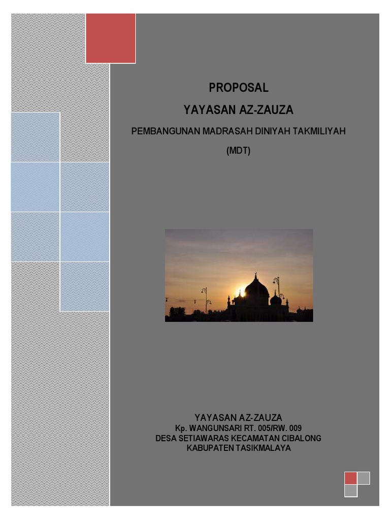 Latar belakang landasan hukum riwayat singkat berdirinya madrasah visi misi penanggung jawab tempat kedudukan dan sumber dana. Gedung yang kami miliki masih sangat terbatas sehingga pelaksanaan program berjalan kurang mulus. Sebagai bahan pertimbangan kami lampirkan beberapa hal sebagai berikut. Contoh proposal keren senin 02 januari 2017. Selanjutnya dalam rangka akhir tahun pelajaran 2014 2015 maka kami atas nama p engurus madrasah diniyah takmiliyah awaliyah mdta al hidayah bekerjasama dengan masyarakat gununggadung rt 04 rw 02 giriwangi gunungtanjung kabtasikmalaya dalam rangka imtihan anak didik siswai mdta al hidayah tahun ajaran 2014 2015 m akan mengadakan kegiatan imtihan yang insya alloh akan di laksanakan pada. Madrasah diniyah takmiliyah nurul islamiyyah gerongan toyaning rejoso pasuruan jawa timur ini berdiri pada tahun 20 09.