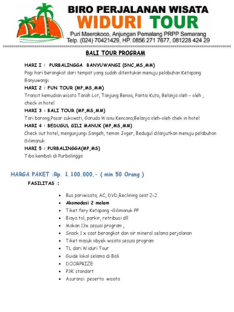 Contoh proposal penawaran paket wisata pdf. Dan merupakan suatu penghargaan terbesar bagi kami apabila saudara memberikan kepercayaan kepada kami dalam program wisata. Semua paket yang anda beli akan dilengkapi dengan fasilitas yang lengkap secara gratis tanpa biaya tambahan apapun. Adapun draftar harga paket wisata tergantung jauh dan dekatnya tujuan wisata. Jasa perjalanan wisata transportasi tour organizer. Dalam proposal kerjasama ini kami melampirkan garis besar tentang segala hal. 37772231 surat penawaran instansi sekolahdoc proposal penawaran paket wisata.
