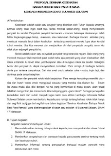 Proposal seminar kesehatan bahaya rokok bagi para remaja lembaga indonesia sehat sulawesi selatan apendahuluan kesehatan adalah salah satu anugrah yang diberikan oleh tuhan kepada umatnya. Untuk itu anda harus memiliki referensi dalam pembuatan proposal. Contoh proposal kesehatan dengan judul pengetahuan ibu hamil tentang anemia dengan kepatuhan minum tablet besi fe di puskesmas pajangan bantul daerah istimewa yaogyakarta sengaja kami upload dan bisa anda copas sebagai acuan dalam menyusun proposal anda jika ada keterkaitan dengan judul ini. Anda bisa melihat beberapa contoh proposal yang ada di internet perpustakaan atau lainnya sebagainya. Seminar 100 tobacco free its our choice adalah seminar kesehatan yang mengungkapkan dunia kesehatan yang merupakan sarana bagi para pelajar untuk lebih peduli dan tanggap terhadap kesehatan lingkunganjiwa peduli kesehatan dan sekaligus dalam bidangnya yang bertujuan untuk memotivasi peserta agar dapat merubah paradigma peserta agar tertarik untuk lebih terhadap lingkungan hidup. Contoh proposal seminar terlengkap proposal seminar pendidikan.
