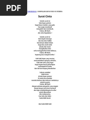 Ws rendra 27 comments. Puisi ws rendra ws rendra seorang sastrawan yang memiliki nama asli wilibrordus surendra broto rendra merupakan tokoh yang menelurkan banyak karya di bidang kepenulisan. Cyprianus sugeng brotoatmodjo dan raden ayu catharina ismadillahayahnya adalah seorang guru bahasa indonesia dan bahasa jawa pada sekolah katolik di solo disamping sebagai. Tuhan aku cinta padamu. Buku kumpulan puisi ini merupakan sebuah maha karya dari ws rendra yang belum pernah diterbitkan. Dalam buku kumpulan puisi ini ws rendra berusaha mengkritik keadaan pada masanya.