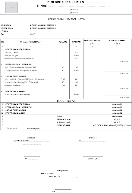 Contoh rab penerangan jalan umum. Maka kami mengajukan permohonan kepada bapak untuk kiranya memberikan bantuan berupa lampu penerangan jalan umum jpu mercury diwilayah kami yakni di kampung babakan asem nagrak desa sindangraja kecamatan jamanis. Kelompok remaja pegadent kordent desa srowot kecamatan kalibagor kabupaten banyumas jalan pegadent indah rt 01 dan rt 02 rw 04 srowot nomor. Jumlah titik penerangan jalan umum sebayak 134 titik dengan jarak antar tiang sepanjang 36 meter. Aplikasi rab otomatis dapat dipakai oleh orang teknik maupun umum karena mudah digunakan tinggal mengisi harga satuan bahan dan upah serta ukuran konstruksi yang dibangun secara otomatis rab akan terisi juga disertai gambar desain dalam file excel. Banyak istilah pju tenaga surya yang dipakai. 1 satu berkas proposal perihal.
