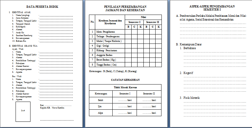 Pin it facebook tweet google plus. Contoh raport paud kelompok bermain format microsoft word ini mungkin bermanfaat juga bagi anda yang membutuhkan referensi yang berhubungan juga dengan berkas contoh raport paud lainnya seperti buku raport paud dan playgroup format raport tk islam isi raport tk lengkap contoh laporan perkembangan anak tk narasi raport kurikulum 2013 contoh pengisian raport taman kanak kanak raport paud. Mas bayu seto 4 desember 2018 0.