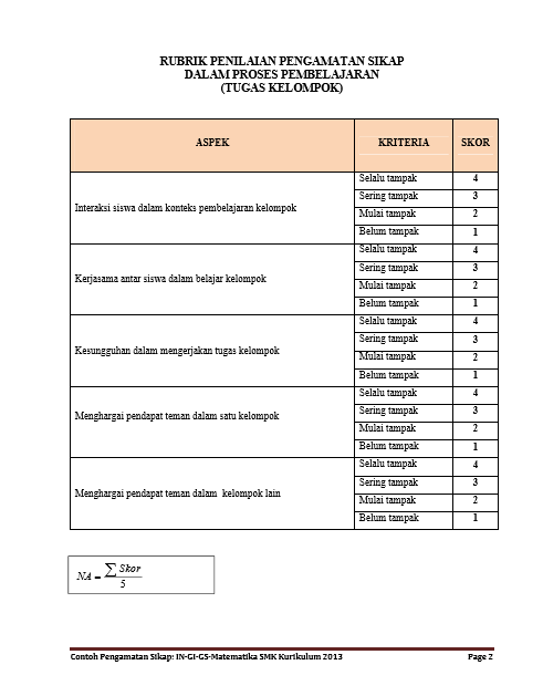 Contoh pada instrumen penilaian minat siswa terhadap suatu materi pelajaran terdapat 10 item berarti ada 10 indikator maka bila skala yang digunakan adalah skala likert 1 sampai 5 berarti skor terendah yang mungkin diperoleh seorang siswa adalah 10 dari 10 item x 1 dan skor paling tinggiyang mungkin. Rubrik penilaian sikap mapel ipa kd 31 menggali informasi dari teks laporan hasil pengamatan tentang gaya gerak energi panas bunyi dan cahaya dengan bantuan guru dan teman dalam bahasa indonesia lisan dan tulis dengan memilih dan memilah kosakata baku. Rubrik penilaian kognitif afektif psikomotor lembar penilaian kognitif tujuan. Contoh rubrik dan lembar penilaian sikap pengetahuan dan keterampilan silahkan klik disini. Di bawah merupakan contoh rubrik penilaian ranah afektif atau sikap pada mata pelajaran biologi pada kegiatan praktikum pengamatan beberapa jenis jamur secara berkelompok mendiskusikan pengamatan jamur menuliskan hasil diskusi ke dalam laporan praktikum mempresentasikan hasil diskusi dan pengamatan mencakup aspek. Pada kesempatan ini saya akan sharing tentang instrumen dan rubrik penilaian afektif kognitif psikomotorik untuk kurikulum 2013.