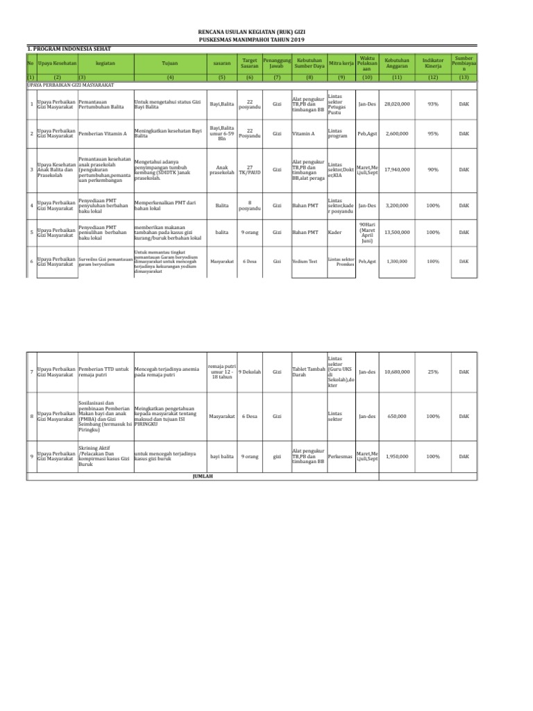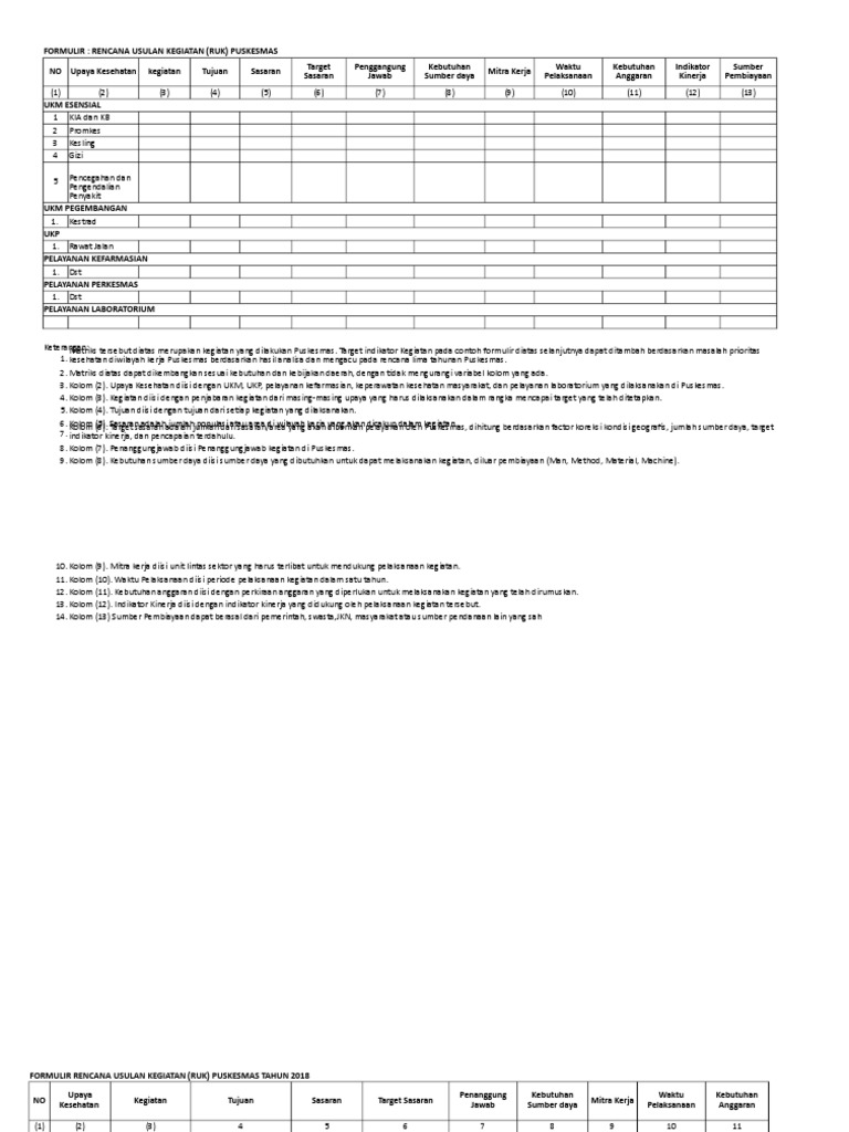 Rencana pencegahan risiko 5153 rencana pelaksanaan inovasi 4134 dan rencana pemberdayaan masyarakat 5162. Contoh ruk dan rpk puskesmas. Contoh bentuk laporan qcdengan bergai macam cara. Ruk dan rpk yg mana. Untuk mencapai tujuan tersebut diselenggarakan program pembangunan nasional secara berkelanjutan. Biar tidak bingung ini contoh pengisian rencana usulan kegiatan puskesmas bisa langsung sedot saja biar ga bingung.
