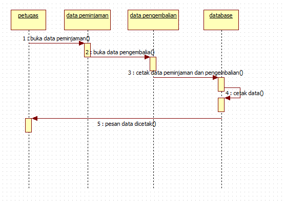 Proses peminjaman buku dilakukan dengan menyerahkan buku dan kartu anggota kepada petugas. Bayangkan saja anggota perpustakaan meminjam buku dan apabila waktu pengembalian melebihi waktu yang sudah ditentukan. Pada contoh sequence diagram diatas bisa dilihat bahwa yang menjadi actors adalah administrator. Diagram diatas merupakan diagram class untuk peminjaman buku di perpustakaan. Selamat datang di materi dose. Activation boxes biasanya memilik garis yang memberitahu aktifitas yang terjadi ketika actors atau objects berinteraksi ke object lain.