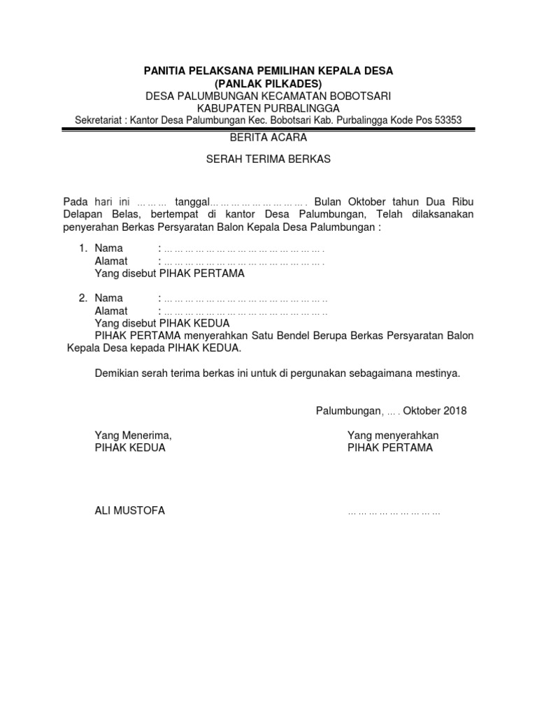 Di perusahaan di sekolah karena cuti karena mutasi serah terima pekerjaan surat serah terima untuk guru. 4 bahwa dengan telah dilakukannya serah terima dokumen tersebut sebagaimana dimaksud butir 3 diatas maka kewajiban pihak pertama untuk menyerahkan dokumen kepada pihak kedua dan hak pihak kedua untuk menerima dokumen tersebut dari pihak pertama telah dilaksanakan. Contoh surat tanda terima berbagai perusahaan badan usaha instansi pemerintahan lembaga maupun organisasi tentu akan sering melakukan serah terima sesuatu. Ada banyak jenis surat yang masih dipertahankan sampai saat ini walaupun sudah banyak media komunikasi canggih. Semoga dapat menjadi bahan referensi dalam membuat surat serah terima dengan benar dan format profesional. Berikut ini adalah berkas format berita acara serah terima aset untuk sekolah negeri dan swasta.