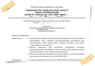 Demikian yang bisa kami sampaikan mengenai keterangan berkas dan share file contoh sk komite sekolah sd smp sma smk format microsoft word. Contoh sk komite sekolah sd smp sma smk tahun 2018 merupakan salah satu contoh surat keputusan kepala sekolah tentang pengangkatan jabatan dewan komite sekolah yang akan saya bagikan dalam kesempatan kali ini. Komite sekolah sumbangan bantuan dan pungutan. Surat keputusan untuk operator sekolah ini bertujuan untuk mengangkat seorang staff agar memiliki tanggung jawab terhadap komputerisasi di sekolah. Contoh sk penetapan pengurus komite sekolah untuk sd smp sma atau sederajat. Sk komite sekolah ini dibuat dalam format word doc docx yang mudah.