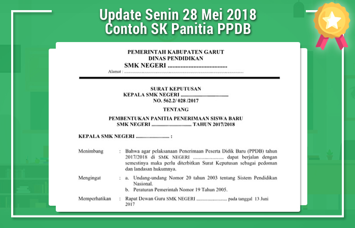 Contoh sk panitia ppdb. Contoh sk ppdb untuk postingan kali ini admin berikan inforrmasi serta berkas terbaru tentang contoh sk panitia ppdb penerimaan peserta didik baru tahun ajaran baru 20172018 yang bisa digunakan baik untuk tingkat sd smp sma maupun smk sederajat. Semoga bermanfaat buat anda semua. Contoh sk panitia ppdbpsb penerimaan siswa baru ini merupakan salah satu hal yang paling penting sebagai salah satu syarat yang harus ada. Sk ppdb akan sangat penting bagi sekolah sebab selain menjadi arsip bagi sekolah sk ppdb tersebut juga akan sangat di butuhkan oleh mereka yang menjabat sebagai panitia ppdb baik untuk keperluan kenaikan pangkat bagi pns maupun sebagai kelengkapan berkas ketika akan melakukan kegiatan akreditasi sekolah. Sk panitia ppdb sma 2019. Download jika anda sudah memiliki surat keputusan penerimaan peserta didik baru dari tahun sebelumnya kami persilahkan anda untuk melihat dan membandingkannya.