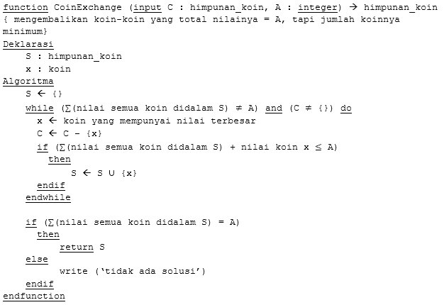 Definisi algoritma greedy dan contoh program wooly boobly 539 am dibalas 6 kali. Penyajian algoritma dalam bentuk bahasa atau tulisan harus memakai sebuah bahasa yang dapat untuk dimengerti manusia dalam membuat langkah langkah dari algoritma itu sendiri. Admin blog contoh soal terbaru 2019 juga mengumpulkan gambar gambar lainnya terkait contoh soal algoritma pemrograman dan penyelesaiannya dibawah ini. Berikut informasi sepenuhnya tentang contoh soal algoritma pemrograman dan penyelesaiannya. Pada contoh ini algoritma greedy dengan ketiga strategi pemilihan objek tidak berhasil memberikan solusi optimal. Melakukan perbandingan dari ketiga cara yaitu secara matematika kriteria greedy algoritma greedy setelah menyelesaikan suatu kasus knapsack problem.