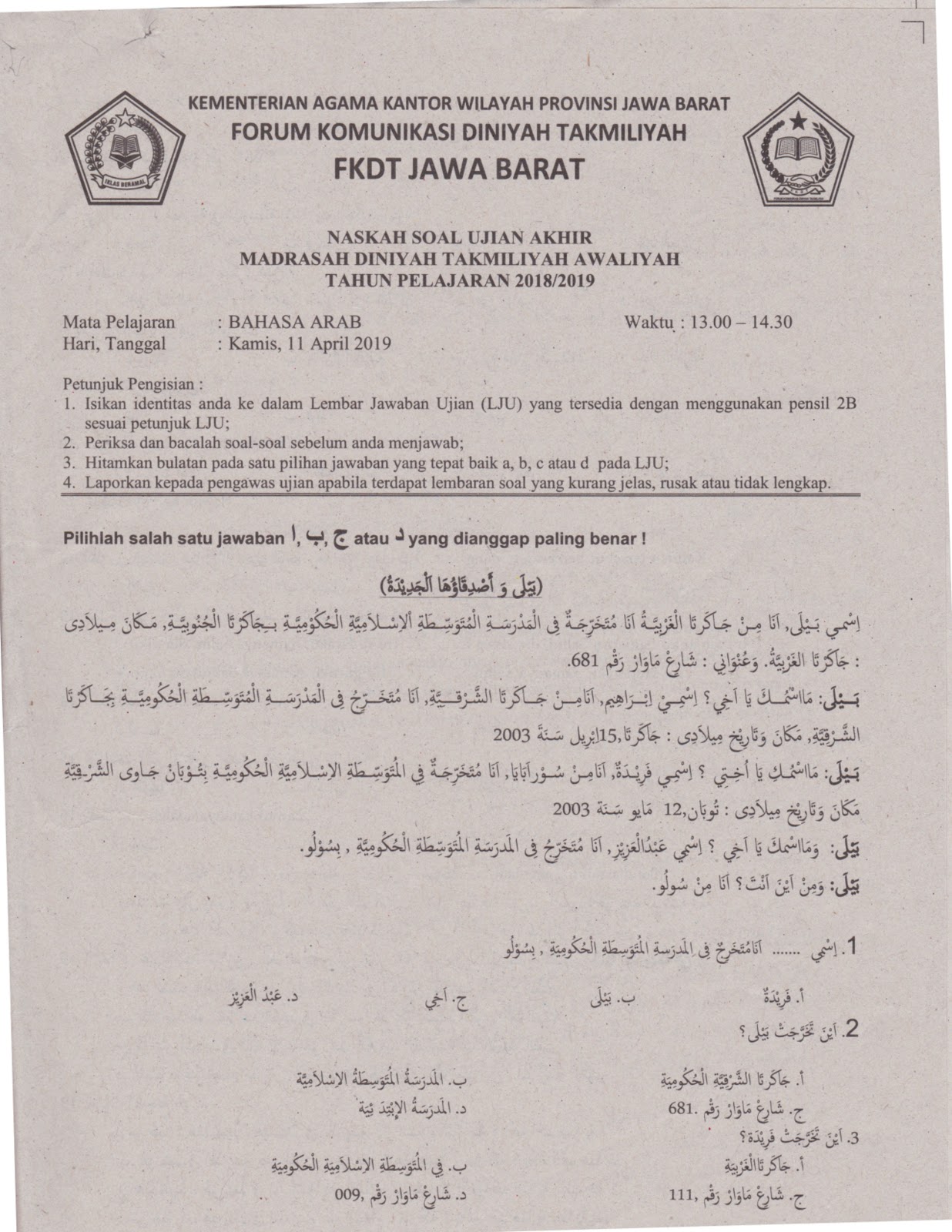 Inilah soal pilihan ganda bahasa arab dan jawabannya. Contoh soal caption text dan jawabannya.