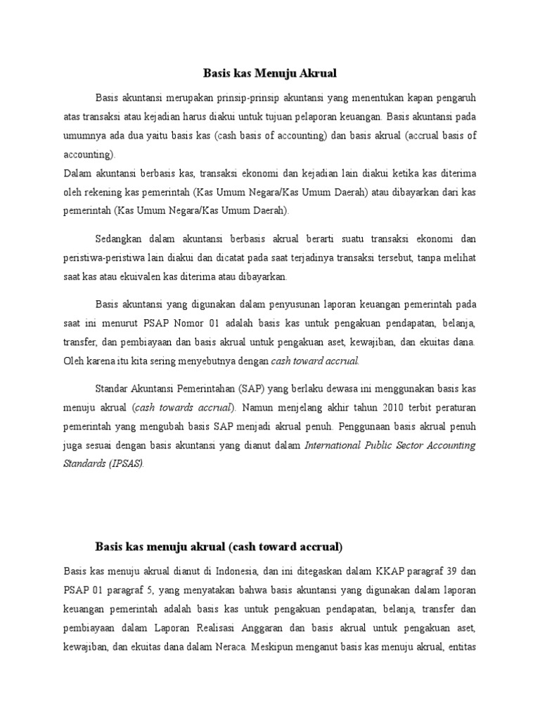 Contoh soal basis kas dan basis akrual. Cash basis vs accrual basis. Basis akrual accrual basis yaitu sebuah teknik pencatatan akuntansi yang pencatatannya dilakukan saat terjadinya transaksi walaupun kas belum diterima. Akuntansi merupakan proses pencatatan transaksi keuangan yaitu perjanjian dua pihak dimana salah satu pihak menjual barang atau jasa dan pihak lain membeli barang atau jasa tersebut. Sebuah transaksi harus memenuhi syarat memiliki dampak keuangan yang biasanya berupa aliran kas baik saat ini maupun yang akan datang. Contoh soal 1 pada tanggal 01 mei pt yon membeli mesin seharga rp 10000000 secara kredit dan akan dilakukan pelunasan pada tanggal 04 mei. Jadi basis akrual adalah basis akuntansi yang mengakui pengaruh transaksi dan peristiwa lainnya pada saat transaksi dan peristiwa itu terjadi tanpa memperhatikan saat kas atau setara kas diterima atau dibayar.