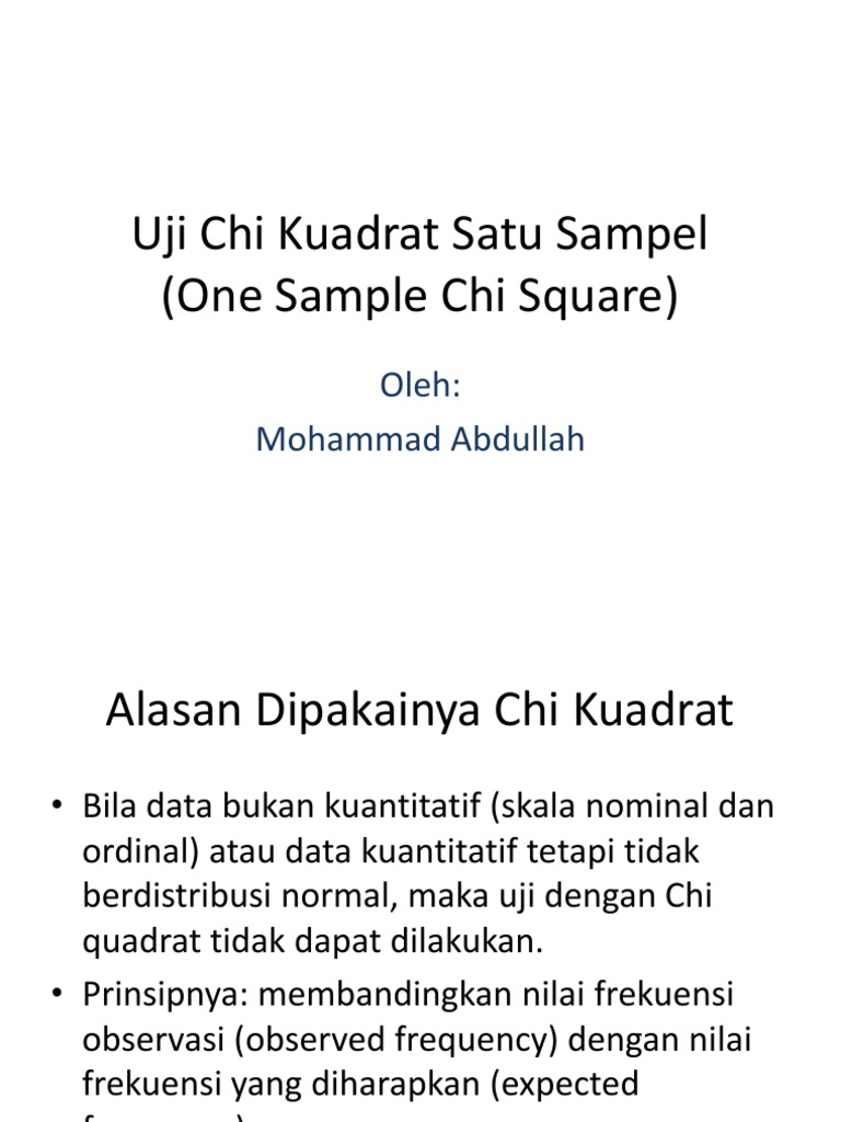 Chi square adalah salah satu jenis uji komparatif non parametris yang dilakukan pada dua variabel di mana skala data kedua variabel adalah nominal. Contoh 1 untuk dua kategori. Bukannya harusnya putra 130 dan putri 56. Chi square adalah salah satu jenis uji komparatif non parametris yang dilakukan pada dua variabel di mana skala data kedua variabel adalah nominal. Chi kuadrat adalah pengujian hipotesis mengenai perbandingan antara frekuensi observasi atau yang benar benar terjadi atau aktual dengan frekuensi harapan. Create your website today.