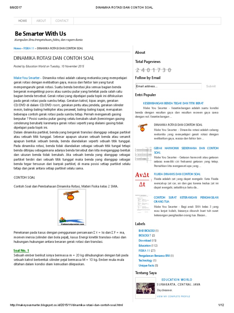 Contoh soal dan pembahasan dinamika rotasi kelas xi. Besar momen gaya yang menyebabkan batang berotasi pada pusat massanya adalah. Atraksi yang sering dilakukan misalnya melipat tubuh dan menaiki roda yang dijalankan di atas tali. Dinamika gerak rotasi. Un fisika 2019 part 3 soal dan pembahasan un fisika 2019. Sekarang di mata pelajaran fisika bab pertama yang dipelajari adalah bab dinamika rotasi dan kesetimbangan benda tegar. Soal dan pembahasan fisika kelas xi bab dinamika rotasi dan kesetimbangan benda tegar part 23.