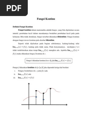 Misalkan f adalah suatu fungsi riil. A f o gx b g o fx. Sebelum masuk pada contoh soal ada baiknya jika terlebih dahulu membaca dan mengerti materinya. Salah satu topik yang berkaitan dengan konsep limit fungsi adalah kekontinuan fungsi atau kontinuitas fungsi. Soal juga dapat diunduh dengan mengklik tautan berikut. Berdasarkan definisi di atas dapat disimpulkan bahwa syarat fungsi kontinu bisa disingkat hanya pada poin terakhir saja yaituboldsymbollimlimitsx rightarrow c fxfcberikut contoh dan pembahasan kekontinuan fungsi yang bisa anda pelajari untuk lebih bisa memahami konsep fungsi kontinu.