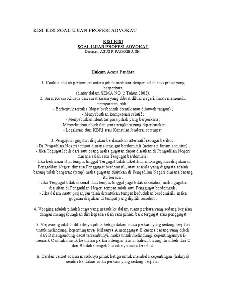 Microsoft project online solution is a flexible online contoh latihan soal essay ujian profesi advokat solution for project portfolio management ppm and everyday work. Mohon berkenan menerima beberapa soal latihan dan pembahasan yang dahulunya saya pakai dalam mempersiapkan diri ujian advokat. We can either improve your writing before your teacher sees the work or make corrections after. The customer ordering the services is not in any way contoh latihan soal essay ujian profesi advokat authorized to reproduce or copy both a completed paper essay term paper research paper coursework. Blog ini saya tuliskan untuk teman teman yang berusaha dan berjuang mengejar profesi sebagai advokat officium nobile saya berharap ringkasan soal soal upa ini membantu proses perjuangan tersebut saat menghadapi ujian profesi advokat yang di selenggarakan oleh peradi dengan besar harapan semoga teman teman semua dapat di nyatakan lulus ujian keep spirit ya guys. Segala isi dan materi hanyalah karangan penulis belaka.