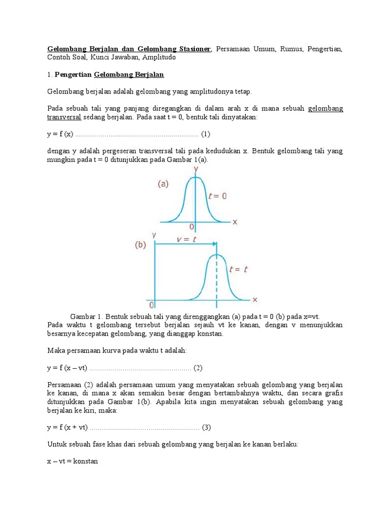 Contoh soal gelombang berjalan dan gelombang stasioner. Ingin tahu bagaimana caranya. Simak paragraf demi paragraf berikut. Terdapat sepotong tali yang panjangnya 5 meter salah satu ujungnya terikat kuat sedangkan ujung yang lainnya digerakkan secara kontinue dengan amplitudo 10 cm dan frekuensi 4 hz. Sebutkan apa saja yang termasuk gelombang berjalan dan gelombang stasioner. Contoh soal gelombang berjalan dan stasioner beserta jawaban gelombang berjalan merupakan jenis gelombang yang memiliki sifat amplitudo yang sama pada setiap titik yang dilaluigelombang stasioner yaitu sebuah gelombang yang memiliki amplitudo yang berubah ubah antara nol sampai nilai maksimum tertentu. Gelombang berjalan rumus dan contoh soal dalam banyak versi soal ujian nasional fisika pasti keluar yang namanya soal mengenai gelombang berjalan.