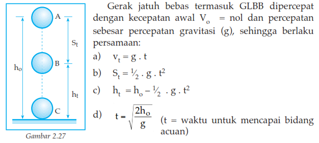 Untuk lebih memahami masalah dengan rumus ini saya akan memberikan contoh masalah seperti berikut. Doni memiliki sebuah kelereng yang ingin di jatuhkan dari ketinggian 45 m dan percepatan gravitasi nya 10 ms 2.