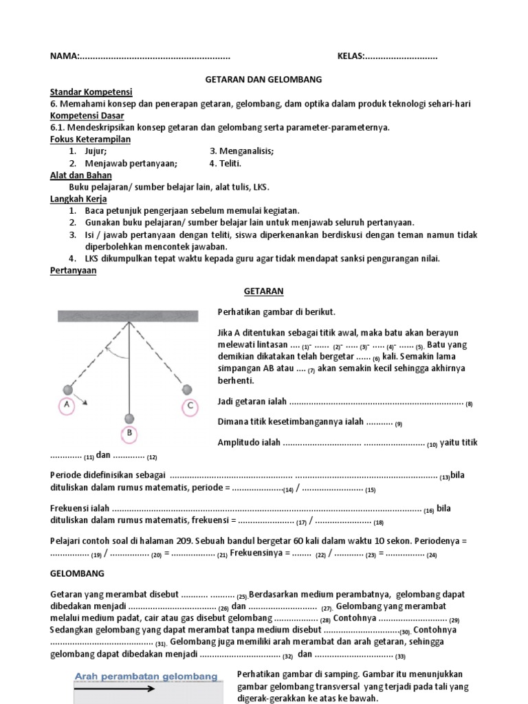 Jumlah getaran yang terjadi adalah 15 getaran. Smp kelas 8 12. Dan periode t. Dalam 1 sekon lintasan yang ditempuh beban pada gambar 1 adalah 2 1 3 1 2 1 3. 20 contoh soal ipa kelas 8 tentang getaran dan gelombang beserta pembahasannya. Terjadi 25 getaran dalam 1 menit b.