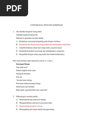 Contoh soal gurindam dan kunci jawabannya. Soal un bahasa indonesia sma menentukan isi gurindam contoh soal dan pembahasannya. Contoh dan jawaban soal menyimpulkan isi gurindam terdapat dalam buku paket bahasa indonesia kelas 7 kurikulum 2013. Latihan soal un unbk bahasa indonesia smp dan pembahasannya demikianlah artikel tentang 40 contoh soal pilihan ganda bahasa indonesia kelas 7 semester 2 kurikulum 2013 dan jawabannya. Soal pilihan ganda materi gurindam dengan jawaban dan pembahasannya berikut ini adalah tiga contoh soal gurindam yang langsung disertai dengan jawaban dan pembahasannya. Kompetensi yang diuji memaknai isi tersurat dalam karya sastra mampu menentukan maksud gurindam dengan tepat. Adapun guru bahasa indonesia pada dasarnya sudah mengerti jawabannya.