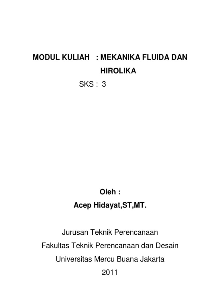 Contoh soal dan jawaban dari rumus mekanika fluida 1. Tujuan dari pembuatan bahan ajar ini adalah untuk memudahkan mahasiswa dalam hal memahami pelajaran mekanika fluida. Jika luas penampang kran dengan diameter d 2 adalah 2 cm 2 dan kecepatan aliran air di kran adalah 10 ms tentukan. Contoh soal dan jawaban teknik sipil. Bahan ajar mekanika fluida ini telah disesuaikan dengan silabus dari jurusan teknik mesin. 1 rapat massa berat jenis rapat relatif volume spesifik kompresibilitas tegangan permukaan viskositas tekanan hidrostatis 2 hukum kekekalan massa energi dan momentum.