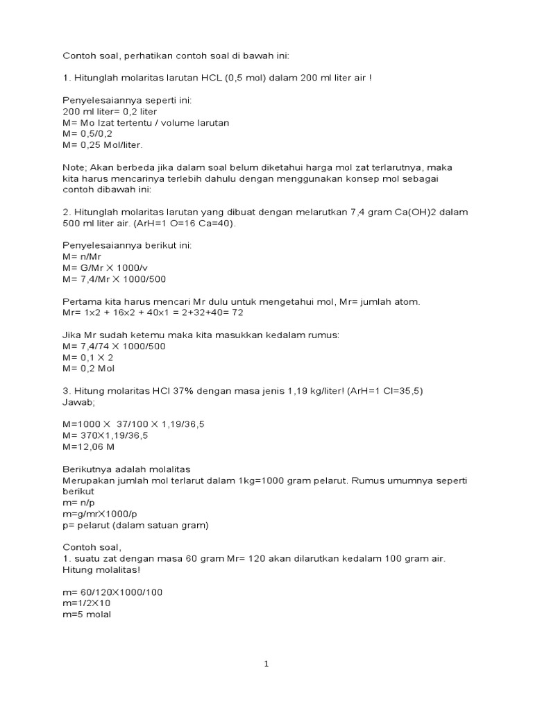 Perhatikan contoh soal menghitung molaritas larutan berikut ini. Demikian pembahasan tentangpengertian rumus dan contoh soal molaritas pembuatan larutan dan pengenceran lengkap. M2 05 m v2 200 ml. Contoh soal sifat koligatif larutan pembahasannya. Soal 1 sd 5 pilihan ganda dan jawabannya. Berapakah volume dari larutan h 2 so 4 2 m yang dibutuhkan untuk membuat larutan 200 ml h 2 so 4 05 m.