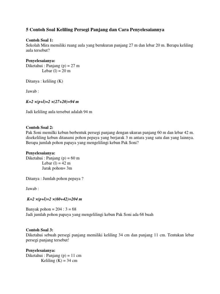 Sebuah kotak yang berbentuk persegi mempunyai panjang sisi 20 cm coba hitunglah luas dan keliling dari kotak tersebut. Sebidah tanah kosong yang berbentuk persegi panjang memiliki ukuran panjang 20 meter dan lebar 15 meter. Luas p x l 357 21 x l l 357 21 l 17 cm jawab. Soal luas dan keliling persegi panjang ini terdiri dari 20 soal pilihan ganda dan 10 soal uraian. Contoh soal persegi 1. Dengan adanya soal ini semoga bisa membantu bapak ibu wali murid wali kelas yang membutuhkan soal luas dan keliling persegi panjang untuk bahan ajar putra putri anak didik yang duduk di bangku sekolah dasar kelas 4 5 dan 6.