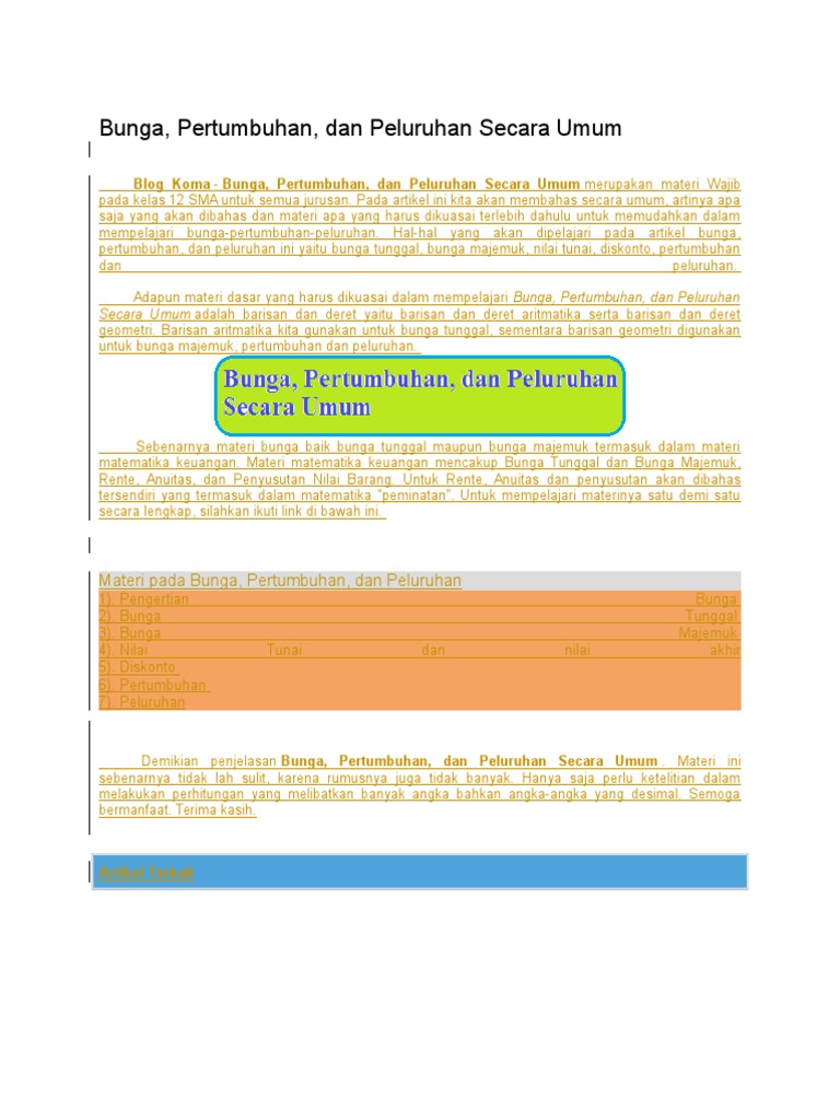 Contoh soal pertumbuhan dan peluruhan. Bunga tunggal bunga tunggal adalah bunga yang diberikan berdasarkan perhitungan modal awal sehingga bunga tetap setiap periode. Mn m0 bunga. Bunga pertumbuhan peluruhan induksi matematika bunga bunga bunga adalah imbalan jasa yang diberikan oleh pemakai modal kepada pemilik modal berdasarkan kesepakatan bersama. Soal dan pembahasan bunga pertumbuhan dan peluruhan pdf berikut ini adalah kisi kisi soal pretest ppg 2018 yang merupakan kumpulan file dari berbagi sumber kisi kisippg tentang soal dan pembahasan bunga pertumbuhan dan peluruhan pdf yang bisa bapakibu gunakan dan diunduh secara gratis dengan menekan tombol download biru dibawah ini. Di antara aplikasi barisanderet geometri adalah dalam perhitungan kasus pertumbuhan dan peluruhan. Kali ini saya akan membahas mengenai pertumbuhan.