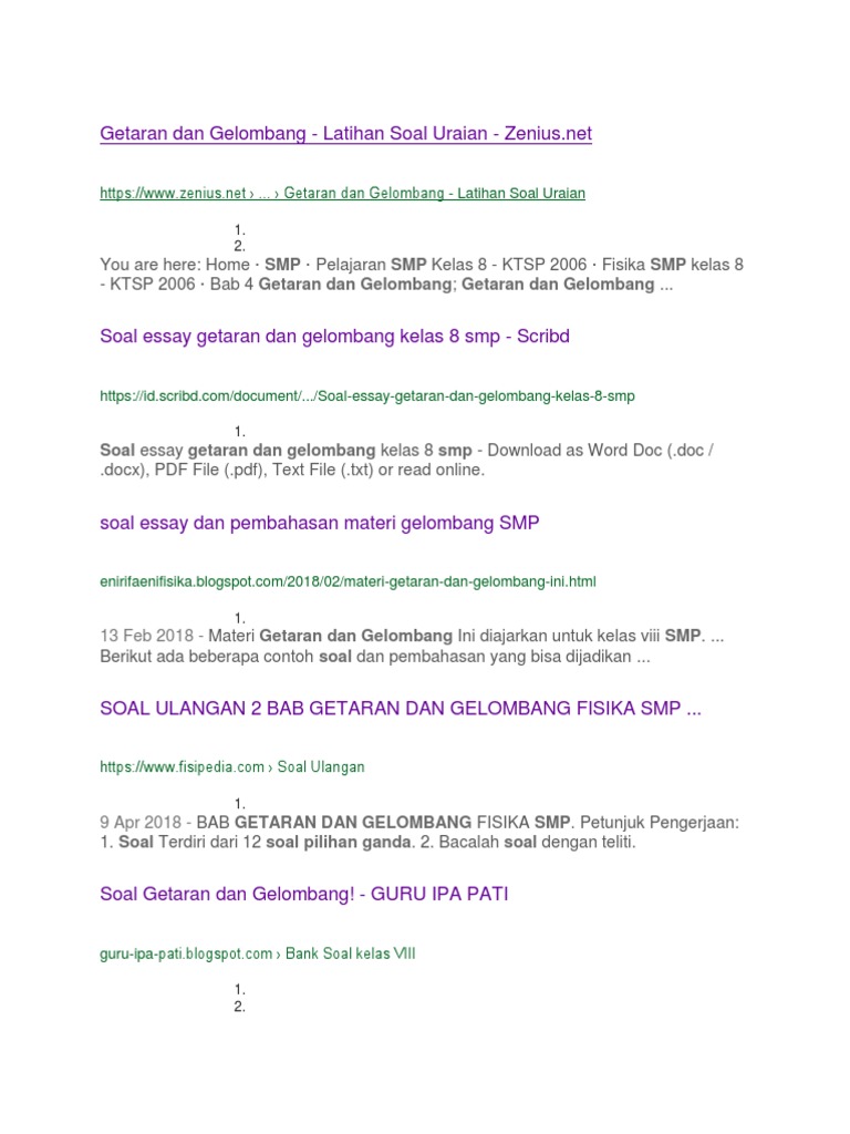 Contoh soal pilihan ganda getaran dan gelombang beserta jawabannya. Getaran gelombang bunyi materi pembelajaran fisika kali ini akan membahas latihan soal getaran gelombang dan bunyi. Latihan soal getaran gelombang dan bunyi beserta jawabannya berikut ini beberapa latihan soal materi getaran gelombang dan bunyi yang bisa adik adik pelajari untuk persiapan menghadapi penialaian akhir semester pas ipa kelas 8 semester genap. Gejala getaran banyak ditemukan dalam kehidupan sehari hari. Oke akhir kata saya ucapkan terimakasih. Gerakan bandul jam dinding senar gitar yang dipetik dan pita suara yang bergetar hingga menimbulkan bunyi merupakan beberapa contoh benda yang melakukan getaran. Contoh soal materi getaran dan gelombang beserta kunci jawabannya.