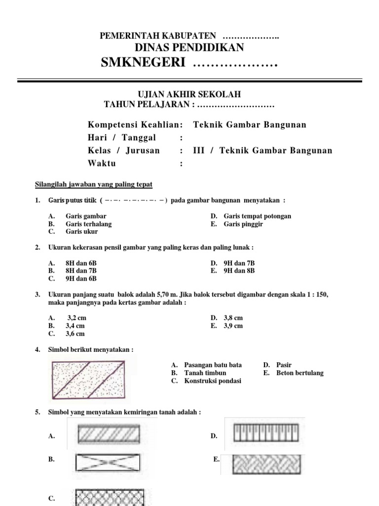 Konstruksi dinding penyekat e. Pilih salah satu jawaban yang tepat. Konstruksi kusen dan daun pintunya latihan soal teknik konstruksi batu dan beton 1jenis pensil di bawah ini termasuk jenis pensil yang lunak. Contoh soal konstruksi pilihan ganda 1. Soal jawaban pekerjaan bangunan sipil nama. Admin dari blog contoh soal terbaru 2019 juga mengumpulkan gambar gambar lainnya terkait contoh.