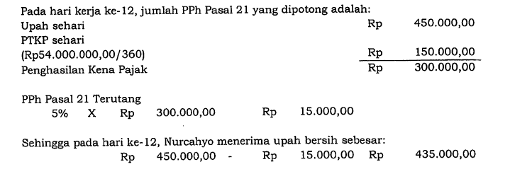 Contoh perhitungan berikut merupakan contoh penghitungan pph pasal 21 atas penghasilan yang diterima atau diperoleh pegawai tidak tetap berupa upah harian upah mingguan upah satuan dan upah borongan. Rp550000 rp20000 rp530000 perusahaan sebagai pemberi kerja sekaligus pemotong atau pemungut pajak wajib memahami ketentuan mengenai pph pasal 21 menghitung gaji harian karyawan. La bekerja selama 27 hari dan menerima upah harian sebesar rp20000000.