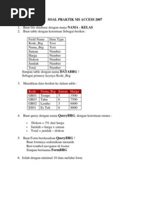 Contoh soal praktek microsoft access dan jawabannya. Berikut ini adalah kisi kisi soal pretest ppg 2018 yang merupakan kumpulan file dari berbagi sumber kisi kisippg tentang soal praktek microsoft word smp yang bisa bapakibu gunakan dan diunduh secara gratis dengan menekan tombol download biru dibawah ini. Itulah contoh soal praktek microsoft access dan jawabannya yang dapat admin kumpulkan. Contoh file soal uts lengkap kelas 1 6 sdmi semua mata pelajaran 20162017 berikut ini adalah kumpulan dari berbagi sumber tentang contoh soal praktek microsoft access 2007 dan jawabannya yang bisa gunakan untuk bank soaldownloadsd dan diunduh secara gratis dengan menekan tombol download biru dibawah ini. Blank access data base adalah digunakan untuk membuat data base baru yang masih kosong dan anda dapat menambahkan obyek tablequeryformreport dan obyek lainnya. Pembelajaran akuntansi modul spreadsheet smkkelasx. Admin 2019 juga mengumpulkan gambar gambar lainnya terkait contoh soal praktek microsoft access dan jawabannya dibawah ini.
