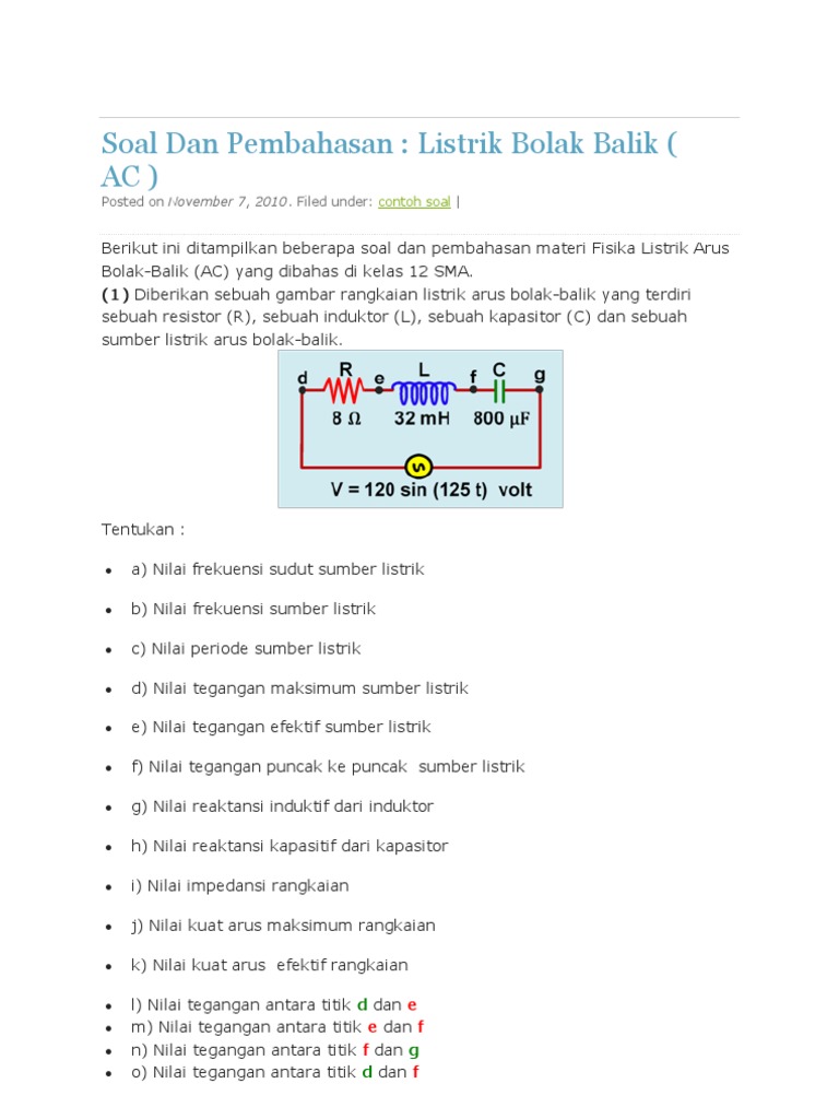 Contoh soal dan pembahasan rangkaian seri rlc kumpulan soal dan pembahasan rangkaian seri rlc. The daily show with trevor noah. Cara pintar cepat pintar fisika rangkaian seri rlc adalah rangkaian elektronika yang tersusun atas resistor induktor dan kapasitor yang dihubungkan secara seri dengan sumber tegangan bolak balik atau tegangan ac. Arus bolak balik dalam dunia kelistrikan banyak digunakan. Dengan istilah lain learning by doing. Soal soal rangkaian arus ac atau mungkin sering disebut soal rangkaian rlc seri memiliki bentuk variasi soal yang sangat beragam.