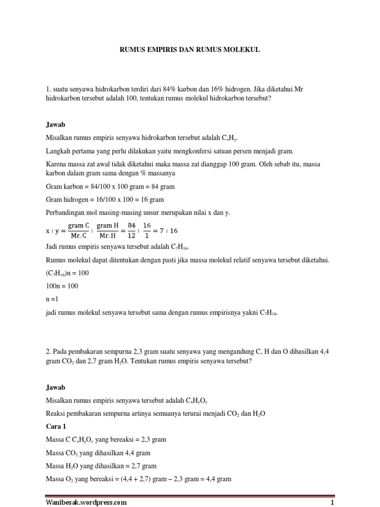 O 527. Contoh soal rumus empiris dan rumus molekul. Supaya kamu lebih paham coba kerjakan contoh soal di bawah ini yuk squad. Reaksi kimia adalah reaksi spontan. Suatu senyawa diketahui mengandung unsur karbon hidrogen dan oksigen. Untuk membantu anda memahami rumus empiris berikut kami bagikan contoh soal rumus empiris lengkap dengan pembahasannya selengkapnya.