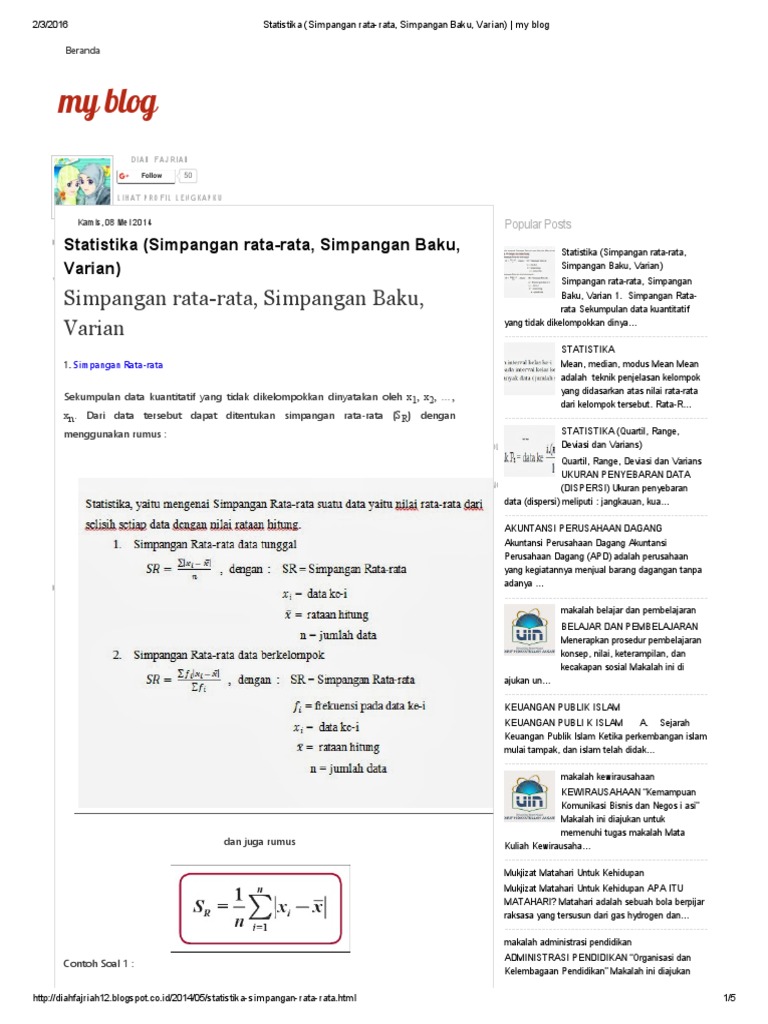 Simpangan rata rata mean deviation adalah rata rata jarak antara nilai nilai data menuju rata ratanya atau rata rata penyimpangan absolut data dari rata ratanya. Sedangkan gaji untuk 2 orang karyawan lain adalah 8 juta per bulan. Misalkan gaji dari lima orang karyawan adalah 1 juta untuk setiap bulan.