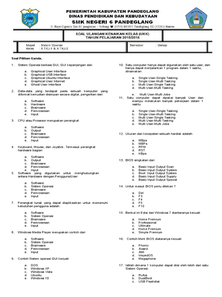 Soal Dan Jawaban Latihan Mata Pelajaran Sistem Operasi