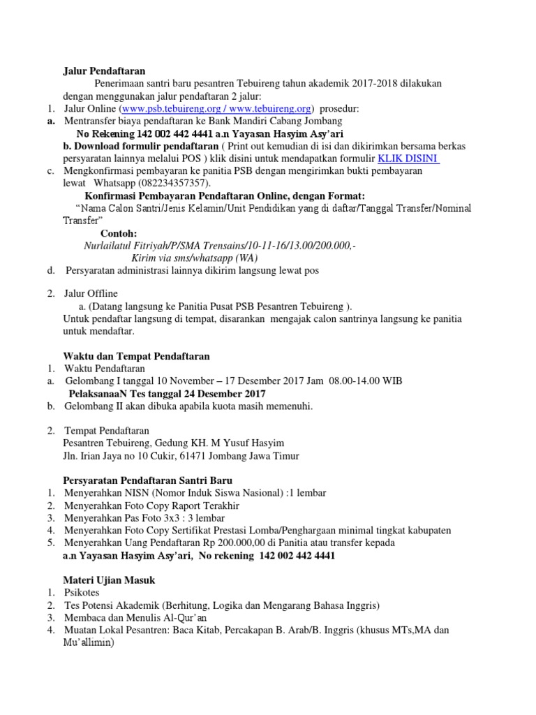 Contoh soal tes masuk pondok pesantren. Menjadi lembaga pendidikan islam yang berkualitas sebagai kontributor terdepan dalam mencetak kader dai. Walaupun menerima santri lulusan smp untuk pendidikan persiapan takhashush guna duduk di kelas yang setara dengan 1 sma akan tetapi tidak ada perbedaan soal ujian bagi santri lulusan sdsederajat dengan lulusan sltpsederajat walaupun nantinya akan ditempatkan di kelas yang berbeda. Contoh soal tes masuk sma 2019 dan jawabannya. Itulah yang dapat kami bagikan terkait contoh soal ujian masuk pondok gontor. Berikut contoh soal psb madrasah aliyah ma soal ujian psb 2012 ma idad. Kisi kisi tes masuk pondok pesantren fathan mubina tahun pelajaran 20162017 9 agustus 2017 27 januari 2016 oleh faishol untuk memudahkan para calon santri dalam mempersiapkan diri menghadapi tes masuk pondok pesantren fathan mubina untuk tahun ajaran 20162017 panitia pendaftaran santri baru memberikan beberapa kisi setiap materi yang diujikan agar para calon santri lebih siap menghadapinya.