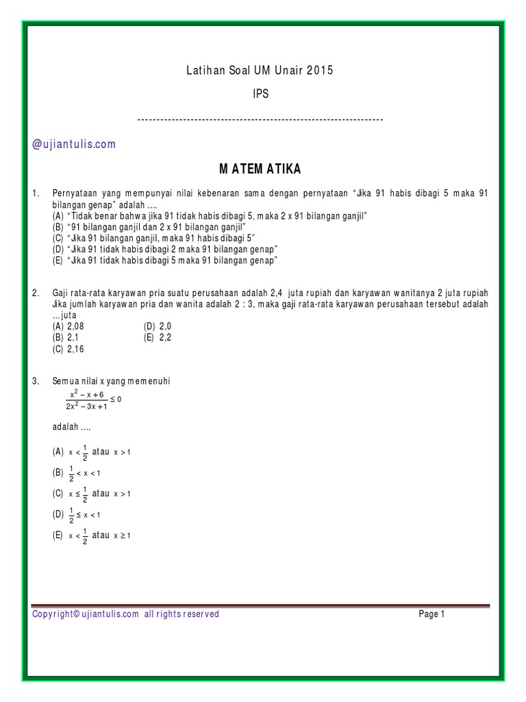 Prediksi soal ujian mandiri kedinasan plus pembahasannya. 1 tanggal 5 januari 1963 kemudian disahkan oleh keputusan presiden no. Menghadapi pelaksanaan um undip universitas diponegoro tahun 2018 ada baiknya kamu mempersiapkan diri dengan sebaik baiknya agar kesempatan menjadi mahasiswa undip dapat terwujud. Softgaleri adalah blog yang berbagi informasi download contoh soal soal uts kelas 1 2 3 4 5 6 sdmi siap cetak. Selain contoh contoh paket sukses ujian mandiri seperti tercantum di bawah kami juga memberikan paket sukses ujian mandiri yang lainnya seperti paket sukses spmk unibrawub spmu unnes slm unja penmaba unj smm ptn barat dan lain lain. Berikut kami bagikan beberapa contoh soal sm uny soal sm uny 2010 ipa kemampuan download soal sm uny 2010 ips kemampuan dasar download soal sm uny 2010.