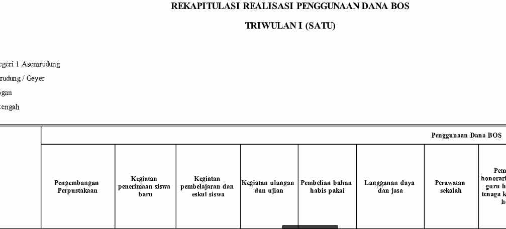 Contoh Spj Bos 2017 Untuk Sd Format Excel Laporan Bos