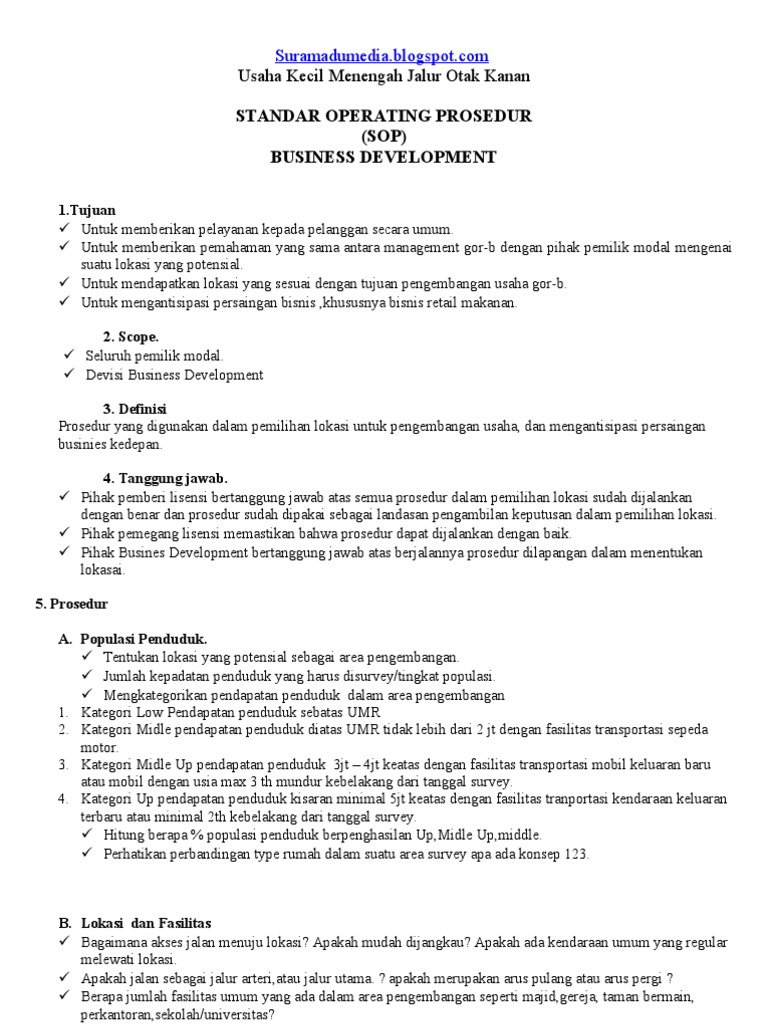 Bingung bisnis tidak mempunyai standar operasional prosedur sop marketing perusahaan standar prosedur departemen pemasaran karena bisnis tidak hanya besar tapi harus kuat dapatkancontoh sop marketingmarketing atau pemasaran mempunyai peranan sangat penting untuk mempertahankan kelangsungan h. Contoh sop marketing terlengkap. Contoh sop marketing perusahaan free konsultasi dan mentoring member group master sop di telegram member group master sop di fb group free update 1 tahun selama ada update terbaru free buku ebook 72 mindset business owner free ebook how to systemize your business. Dan bila anda ingin mengetahui contoh contoh sop perusahaan lainnya dengan perangkat pendukung pelaksanaannya langsung saja ke. Contoh sop perusahaan sop atau standar operasional prosedur adalah dokumen petunjuk pelaksanaan suatu kegiatan atau pekerjaan agar mencapai hasil yang optimalsop dibuat untuk menertibkan dan menstandarisasi suatu kegiatan atau proses pekerjaan. Standar operasional prosedur sop oleh dosen pendidikan 2 diposting pada 17032020.