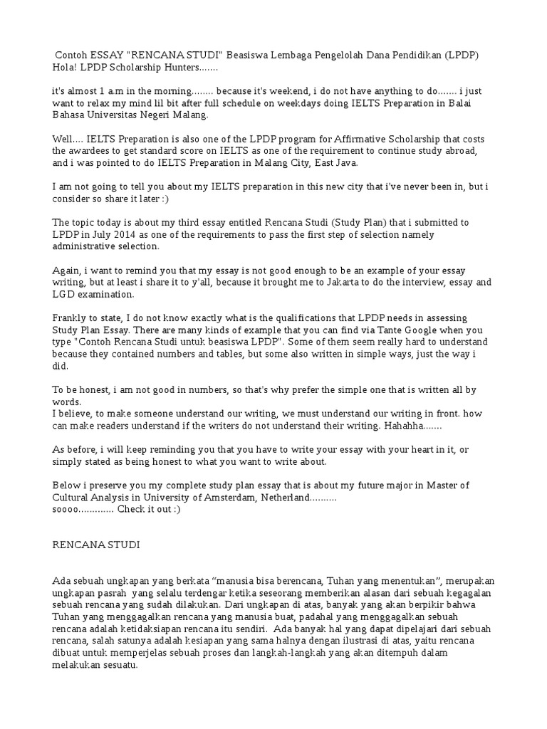 Tips menulis essay sukses terbesar dalam hidupku 8. Tips menulis essay peranku untuk indonesia beasiswa lpdp 7. Contoh dan cara membuat rencana studi study plan lpdp december 23 2018 lpdp rencana studi rencana studi lpdp merupakan salah satu dokumen yang paling penting untuk bisa lolos beasiswa lpdp karena pada saat kita wawancara hal yang. Apabila anda sudah puas dengan study plan anda minta teman anda mengoreksi study plan tersebut. Tips lolos administrasi beasiswa lpdp 3. Bayangkan reviewer yang akan membaca ratusan study plan.