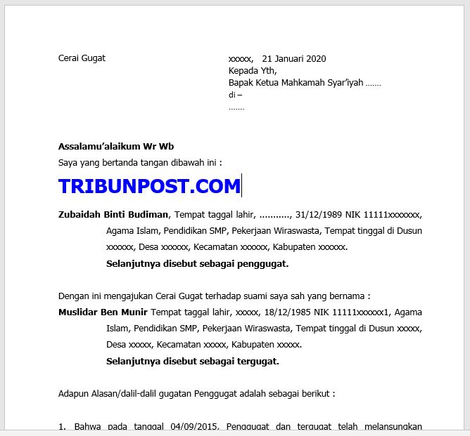 Contoh surat pernyataan cerai pada umumnya tidak ada orang yang menginginkan perceraian namun pada kenyatannya masih sering terjadi kasus perceraian dimana mana. Berikut ini ada lagi contoh ari surat cerai talak. Namun apabila hanya pernyataan lisan saja maka tidak dapat dijadikan bukti untuk menyatakan bahwa sesorang tersebut janda atau duda resmi bercerai secara agama. Contoh surat permohonan cerai talak oleh suami merupakan surat yang diajukan oleh suami kepada pengadilan agama setempat. Jika anda ingin mengajukan permohonan izin cerai talak untuk menceraikan isteri disertai dengan gugatan hak asuh anak silahkan baca. حل قيد النكاح أو بعضه melepaskan ikatan pernikahan secara menyeluruh atau sebagiannya menurut al jaziri talak ialah.