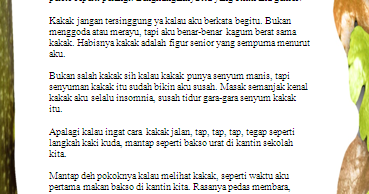 Sebenarnya saya tidak bermaksud menyinggung kakak. Tapi ada hal yang tidak bisa saya lupakan yaitu ketika kakak memarahi ridwan. Kak dinas yang baik entah kenapa ketika menulis surat ini aku jadi ketawa tawa sendiri padahal kakak jawang melucu atau melawak ketika acara mopd.