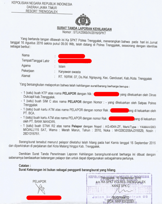 Contoh surat kehilangan ktp. Setelah dokumen tersebut hilang maka mau tidak mau anda harus mengurusnya kembali agar bisa mendapatkan dokumen penggantinya. Kejadian kehilangan dokumen penting ini juga pernah kami alami sendiri. Surat keterangan pengganti sementara ktp surat yang dikeluarkan oleh dinas kependudukan dan pencatatan sipil digunakan sebagai bukti identitias diri pengganti sementara kartu tanda penduduk dalam masa transisi pembuatan perubahan. Jika kehilangan ktp siapkan fotokopi ktp atau jika ingat nomor induk ktp juga bisa anda laporkan untuk mendapatkan surat kehilangan. Berikut ini merupakan contoh surat keterangan pengganti. Jika kehilangan sim wajib menunjukkan fotokopi sim yang hilang kalau tidak ada nomor sim.
